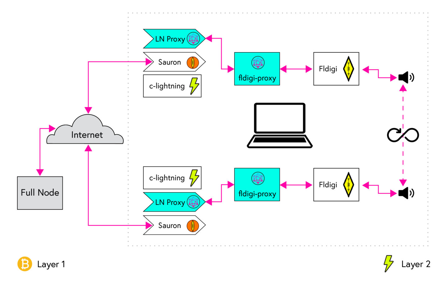 The fldigi-proxy code is available here, and the compatible version of lnproxy is specified in the README. If you have questions about the project, issues using it, or are a amateur radio operator interested in testing, feel free to leave an issue in the GitHub repository, contact me at [email protected], or join the discussion on development in the Global Mesh Labs Slack.